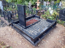 При работе над данным заказом нам предстояло полностью благоустроить могилу: изготовить памятник, уложить наземное покрытие и установить оградку. Приоритетом для клиента было качество работы, сочетающееся с разумной дешевизной. То есть мемориальный комплекс предстояло изготовить из гранита в строгих траурных тонах. Изначально на участке присутствовали лишь две таблички (с основной информацией о покойной и её фотографией) и металлическое ограждение.